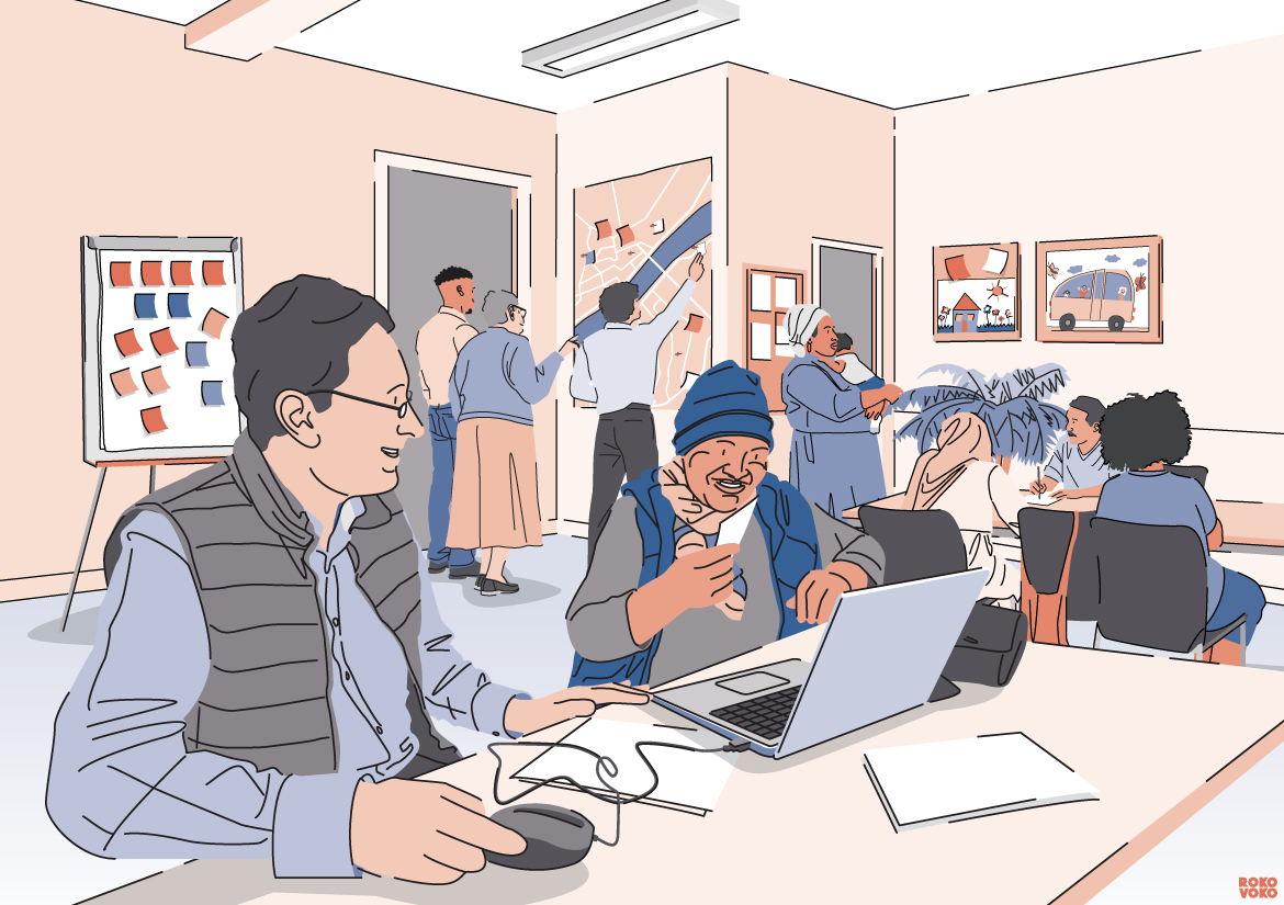 Nous avons imaginé et réalisé une série d’illustrations originales pour le Secours Catholique, afin de faire ressentir la chaleur des lieux d’accueil et l’engagement des bénévoles autour de trois valeurs essentielles : accompagner, accueillir et écouter, dans toute leur diversité humaine.